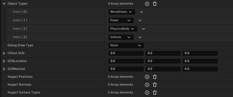 Impact Normals - Hit normal as a result of the firing. Direction in which the trace impacted.